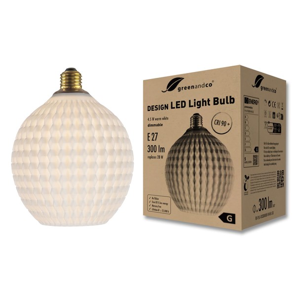 - Efficiency and quality: this dimmable lamp has a light output of 300 lumens and replaces a conventional light bulb with 28 W. It consumes just 4.5 W, which corresponds to an energy saving of 83%. The average life is 25,000 hours (that's over 22 years with 3 hours of operation daily). The lamp lights up in full brightness immediately after switching on.
