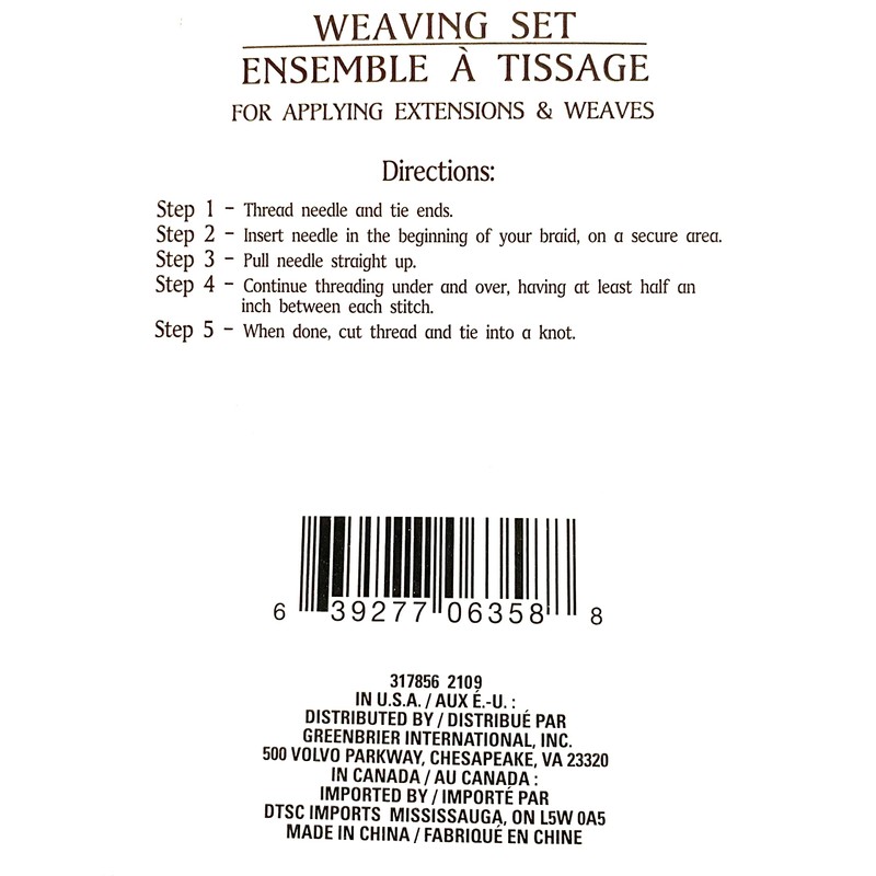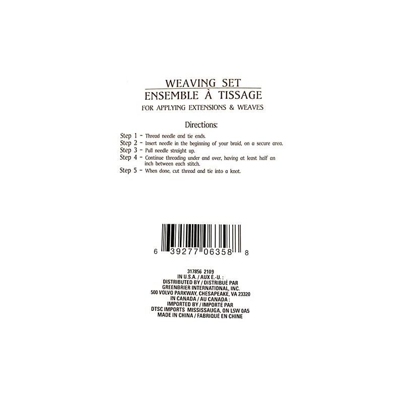 Greenbrier International 4 Piece Hair Weaving Set (1 Thread, 1 C Shaped Needle, 1 L Shaped Needle, 1 Regular Needle)