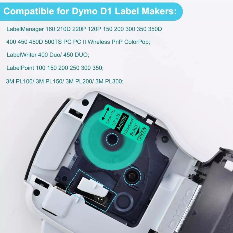 GREENCYCLE Compatible DYMO D1 Label Maker Tape 45019 S0720590 Black on Green 1/2"x23' 100PK