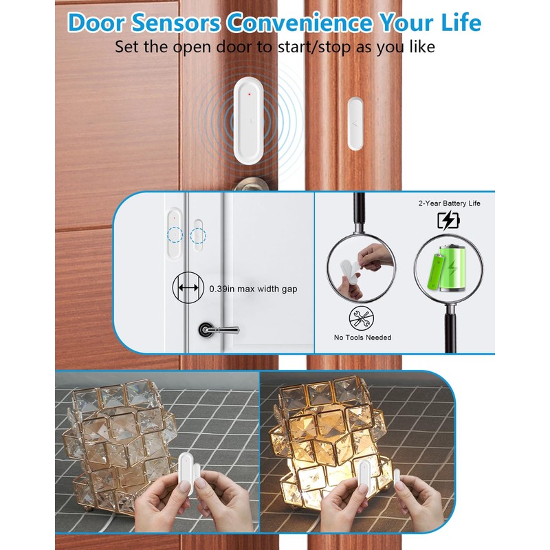 - 【📌 Customizable DIY Setup – Smart Home Automation!】 Easily personalize your contact sensor system with flexible DIY settings! Choose your preferred linking mode to automatically control motion sensor outlets or wireless plugs when a door opens or closes. The system also supports easy expansion, allowing you to pair multiple motion sensor plug outlets and wireless outlet plugs for a fully customized smart home automation experience.