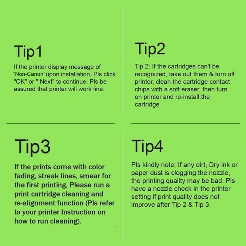 - Compatible Printers: Canon PIXMA MG2420 MG2450 MG2520 MG2522 MG2525 MG2555 MG2550 MG2920 MG2922 MG2924 MG2950 MG3020 MG3022 MG3029 IP2820 IP2850 MX490 MX492 MX498 TR4520 TR4522 TS3120 TS3122 TS3320 TS202 TS302
