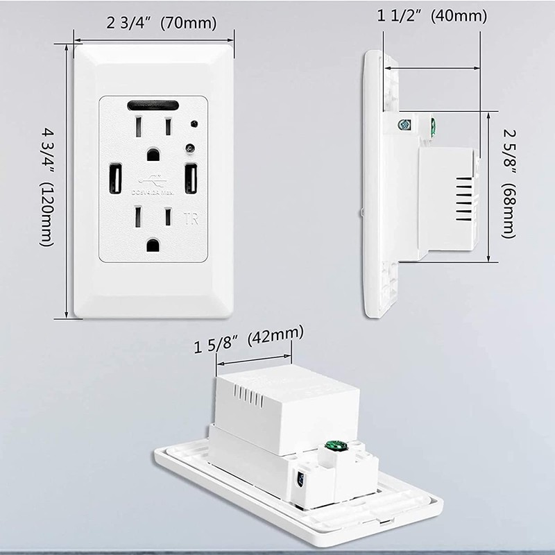 - 【Superior Safety Features】Crafted from fire-resistant materials and equipped with high-quality components, this outlet is built to last. The TR Duplex Receptacle prevents accidental shocks and burns, ensuring your peace of mind. An intelligent chip automatically detects the optimal charging current for your devices, ensuring efficient and safe charging every time.
