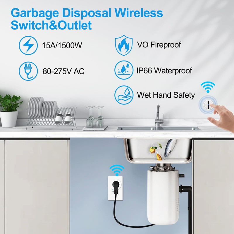 - 【Widely Compatible】The remote outlet rated voltage 80V-275V, wireless control switch kit for 15A/1500W.Can also be used to control lights, fans, TVs and coffee makers. Make the tedious operation of home appliances easy and simple, make every corner of your home full of wisdom and convenience.
