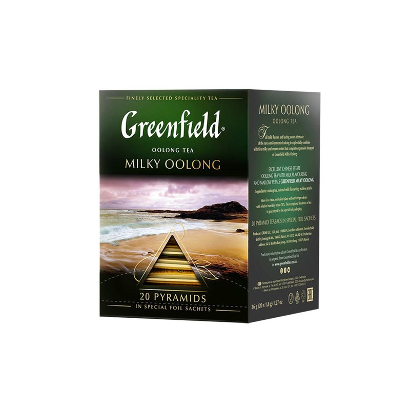 • Greenfield Milky Oolong is a semi-fermented tea. Tea leaves, after harvesting, undergo partial fermentation, remaining approximately in the middle between black and green tea. Due to this, it perfectly harmonized the impeccable freshness and purity of green tea and the rich, vivid taste of black framed by a fragrant aroma.