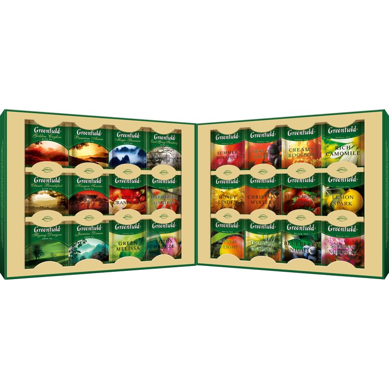 - Greenfiled Tea Variety Gift Set Box 24 Kinds fiavor 96 count Black Green Teas