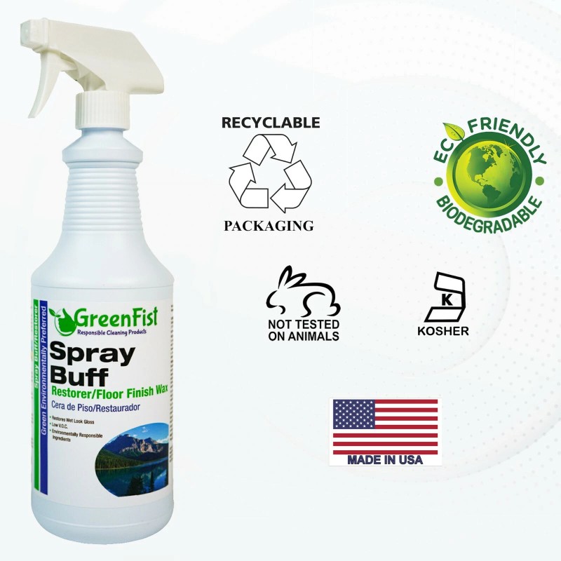 GreenFist Spray Buff Restorer Renewing Floor Finish Wax Polisher Buffer Spotless(2x32 oz)