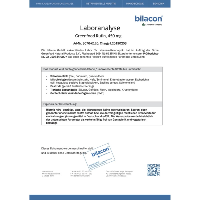 Greenfood Rutin 450 mg High-Dose Vegi Capsules - No Artificial Additives, GMO-Free, Vegan 3076-K120