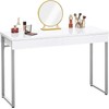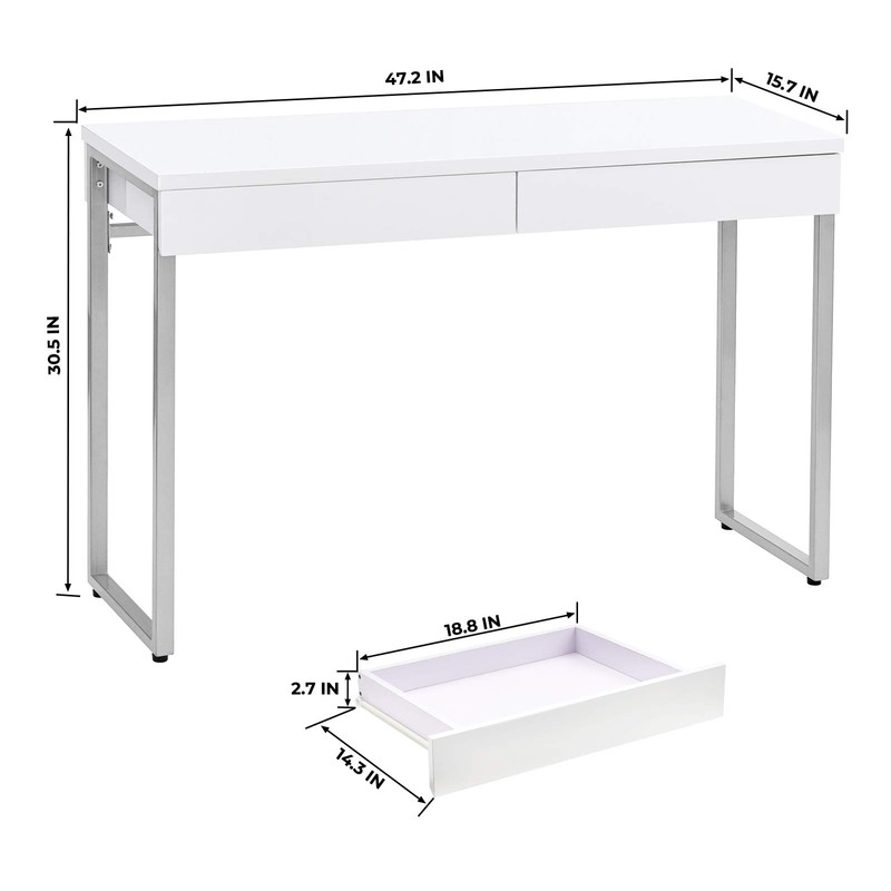GreenForest Vanity Desk with 2 Drawers Glossy White 47 inch Modern Home Office Computer Writing Desk Makeup Dressing Table with Metal Silver Legs for Bedroom,Silver