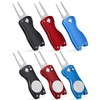 GreenHaven 6 Pack Foldable Golf Divot Repair Tool with Magnetic Ball Marker and Pop-up Button Green Tool Accessories with Metal Fork Tine and Metal Handle for Golfers,Black&red&Blue