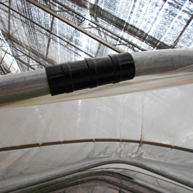- Snap clamps allow attachment of greenhouse film to a pipe.