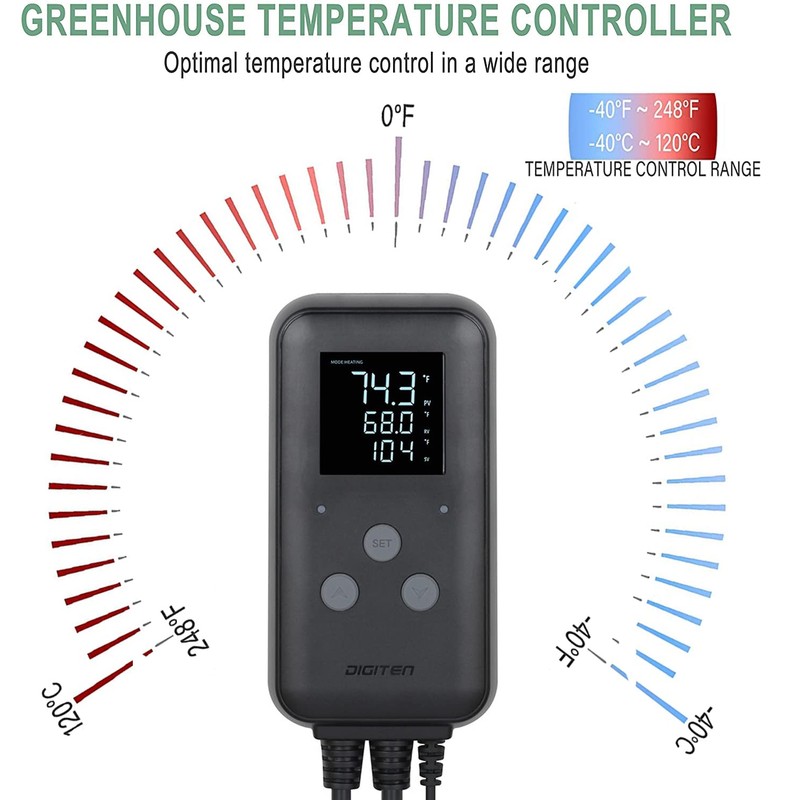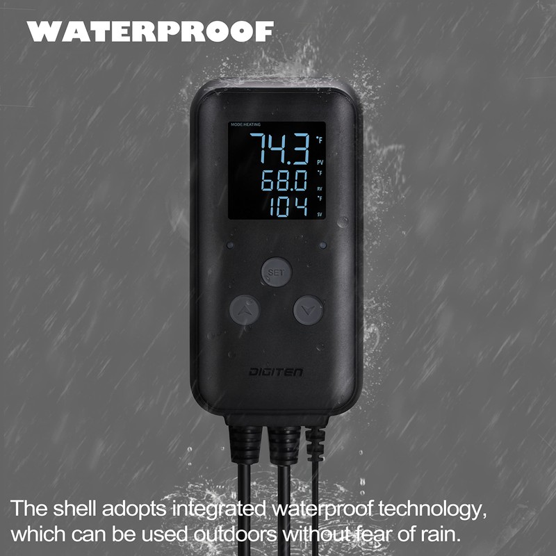 - 💧💧【Waterproof Temperature Controller】 This waterproof thermostat can be used outdoor. The body and sensor are waterproof. The waterproof level IP65. It will be a must in your greenhouse.