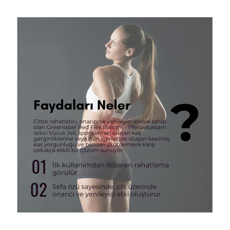 - Having A Relaxing, Repairing And Regenerating Effect On The Skin, Greenlabel Red Flex Balsam - Pferdebalsam Warming Body Gel Offers A Highly Effective Solution To Muscle Tension That Occurs After Sports Or Contractions, Muscle Fatigue And Similar Problems That Occur During The Day.