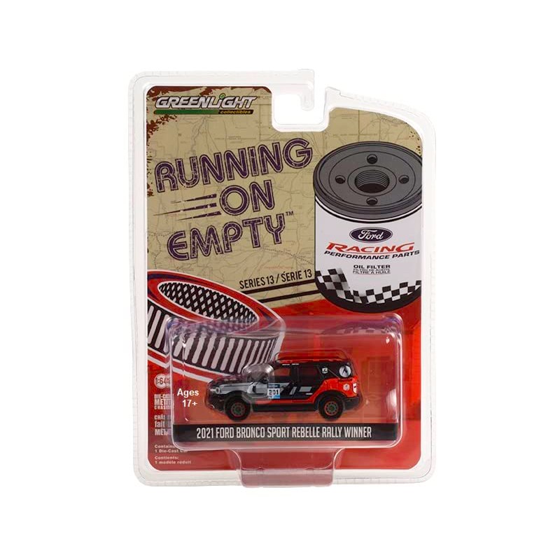 Greenlight 41130-F Running on Empty Series 13 - 2021 Bronco Sport #201 Rebelle Rally Winner - 1/64 Scale Diecast