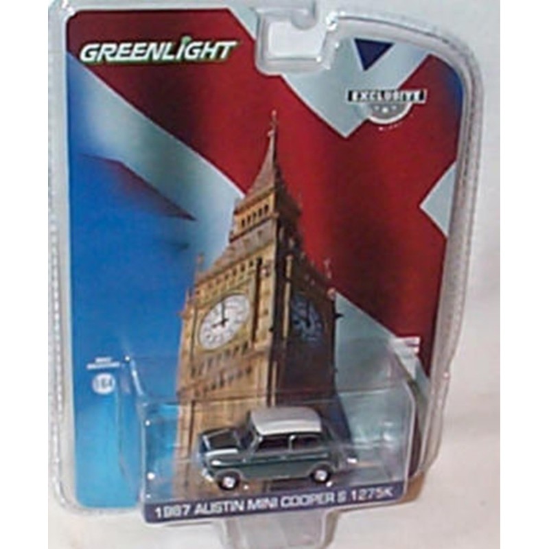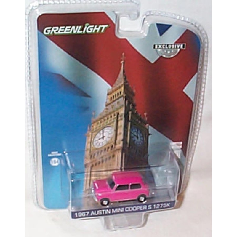 Greenlight Collectables Austin MINI C00PER S 1275 1967 3 piece set BR Green, black and pink vehicle 1:64 scale limited edition diecast model