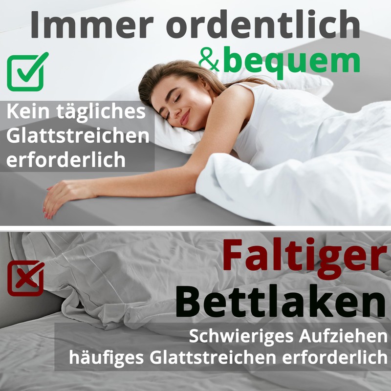 - ✔️ Perfect fit on the mattress. Always a beautifully covered bed