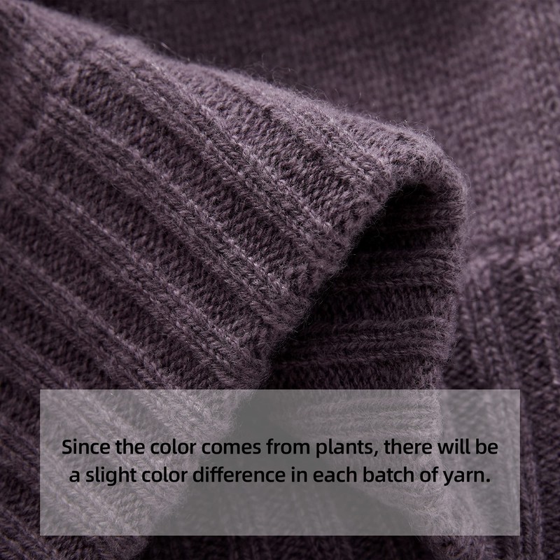 - HIGH-END CRAFTSMANSHIP: In the process of this plant-dyed cashmere product, chemical fixatives extracted from petroleum are not used, but biological enzymes are used to fix the color; so that the clothes are brightly colored, and the color is not easy to fade after washing. Each color is derived from natural ingredients. Super long and short fiber from Alashan, using 12-gauge knitted fabrics, tightly twisted 3-ply yarn knitting process. It is durable and not easily deformed.