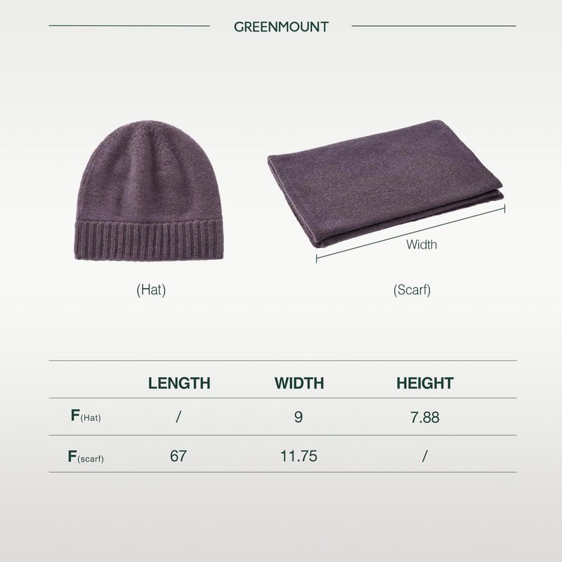 GreenMount Women 100% Pure Cashmere Beanie Hat & Cashmere Scarf Set With Gift Box for Women Winter Plant Dyeing