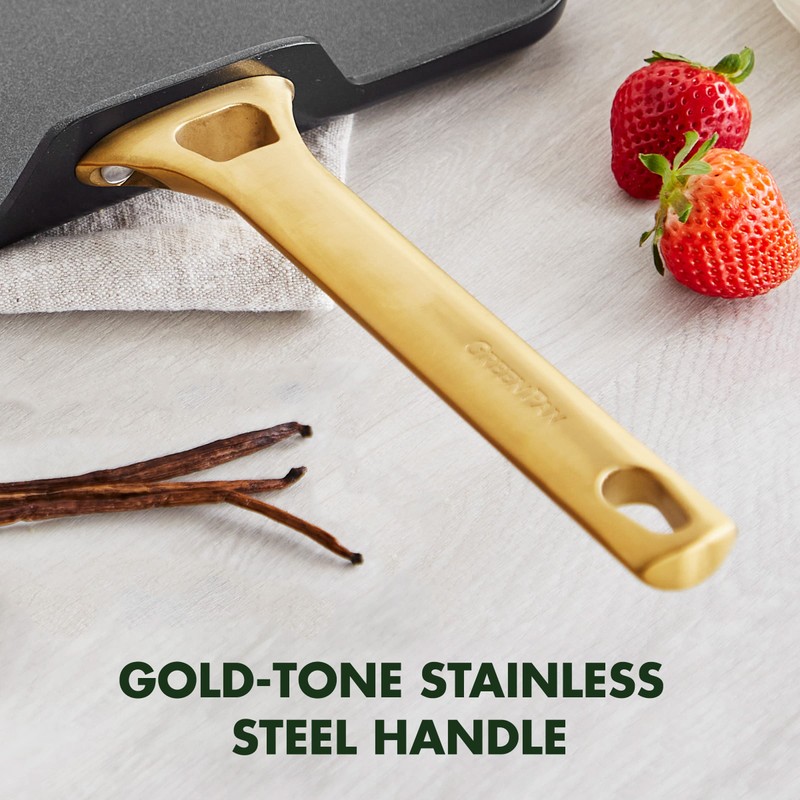 GreenPan Reserve Hard Anodized Healthy Ceramic Nonstick, 11" Square Griddle Pan, Gold Handle, PFAS-Free, Dishwasher Safe, Oven Safe, Black
