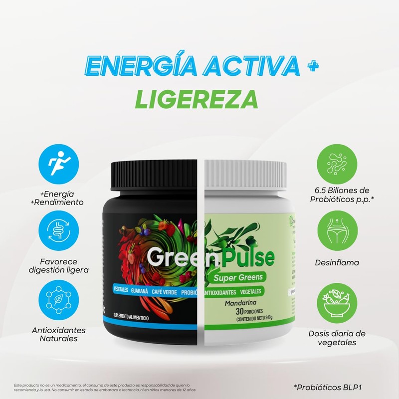 GreenPulse Performance Bundle | Morning Boost + Super Greens | 60 porciones | Sin azúcar añadida