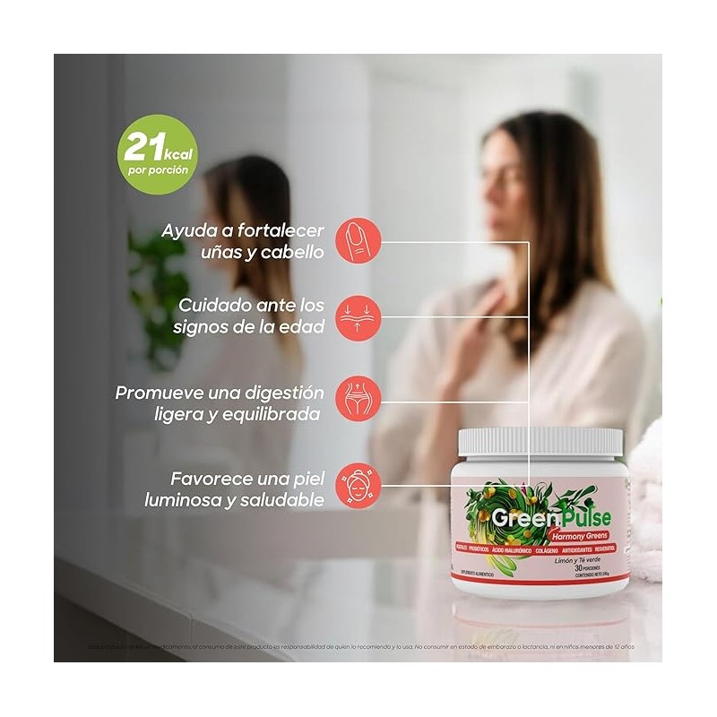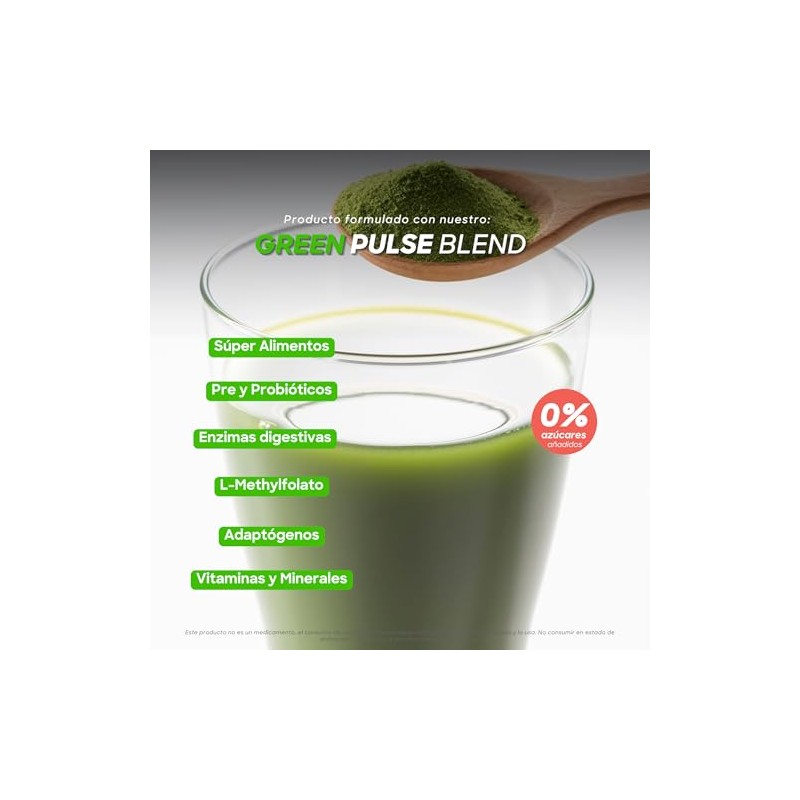 GreenPulse Performance Harmony Greens | Jugo Verde en Polvo sin azícar, con Colágeno, Ácido Hialurónico y Biotina | Antioxidantes | Probióticos | Sabor Limón y Té Verde | 30 Porciones