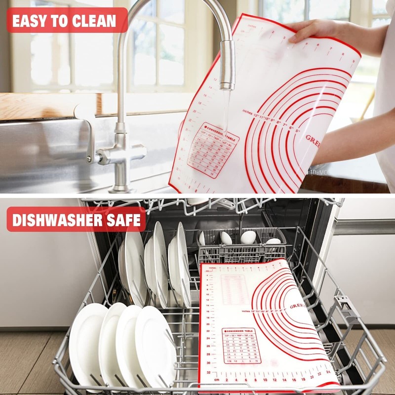 - NON-STICKY SURFACE: Even if grease or dough sticks to the surface, the pastry mat can be easily cleaned to keep countertops clean and sanitary.