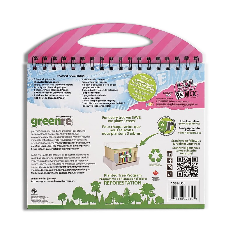 greenre L.O.L Surprise Eco-Colouring Pencils and Activity Pad-Coloring Pencils, Mini Notebook, Activity and Sticker Page Sketch Pad for Children, Kids 4,5,6,7+ years old - Under Tree Planting Program
