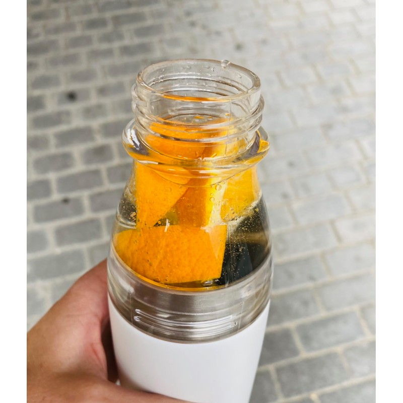 Includes two different attachments, both 100% leak-proof. A screw lid with a practical carrying strap made of silicone, as well as a bottle screw lid made of Tritan, which increases the filling capacity to 500 ml. Thanks to the transparent Tritan, the drink content in the upper area is also visible from the outside.