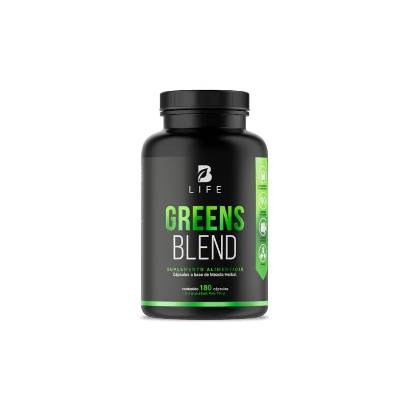 Greens Blend 180 Cpsulas. Ingredientes naturales Espirulina, Moringa, Weathgrass Clorela, Matcha y Aloe Vera Mezcla Herbal. Greens Blend B Life.