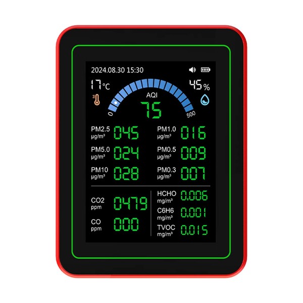 - [Hochempfindliche Sensoren] bieten genaue Messwerte von CO2 (1PPM), TVOC (0,01 mg/m³), HCHO (0,01 mg/m³) und PM (1 & mgr; g/m³)