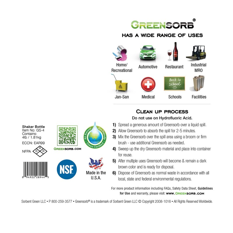 GREENSORB GREENSORB Multi-Purpose, Reusable Granular Absorbent - 4lb shaker bottle - GS-4 Carton