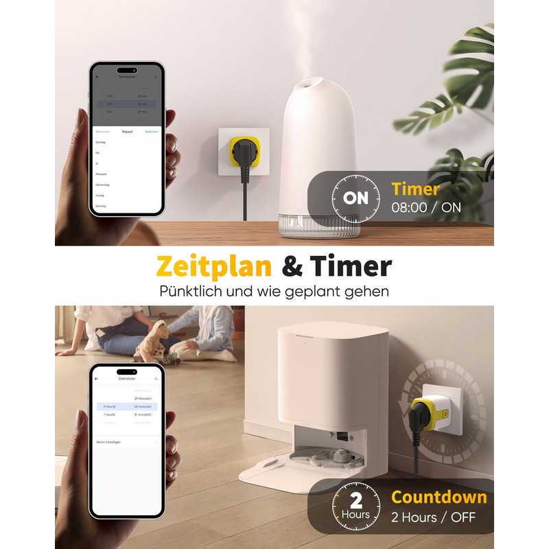 - ??Erstellung von Zeitpl?nen der GreenSun smarte Steckdose??- Mit der GreenSun wlan Steckdose ist Zeitpl?nen Automatisierungsfunktionen. Stellen Sie die Zeit zum Ein oder Ausschalten der an die Zeitschaltuhr Steckdose angeschlossenen Ger?te nach Bedarf ein, angeschlossene Ger?te arbeiten automatisch zu voreingestellten Zeiten. Mann kann die Steckdose benutzen, um die Kaffeemaschine um 7:00 Uhr zu starten.