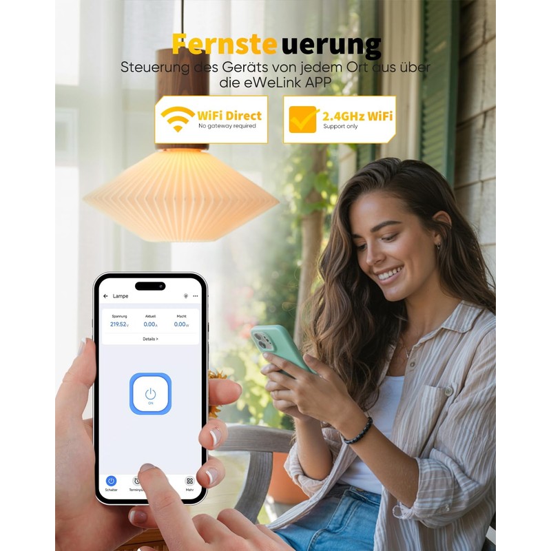 • Remote control via eWeLink app of the GreenSun smart socket: with the eWeLink app, the GreenSun WLAN socket becomes the central element of your smart home. The intuitive user interface allows you: turn on/off the socket remotely with eWeLink app of the GreenSun smart socket. Note: ① Works with eWeLink app, does not support Tasmota or Zigbee or Vesync. Only 2.4 g.