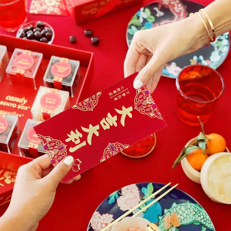 - DESIGN: Chinese red and elegant gold color matching, traditional and festive, each red envelope is printed with a lovely design, which is full of the atmosphere of holiday, you will love the vibrant red styling and good luck wishes.
