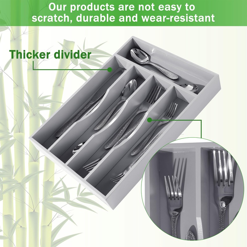 • 【Perfect Size of 10” Wide】Our silverware organizer is ideal for saving kitchen storage space. Our silverware tray for drawer is specially designed to be 10" wide and 14" long, making it suitable for most drawers.The 5 compartments of 2” deep provides more space for our storage, we believe our utensil organizer can meet your life needs.