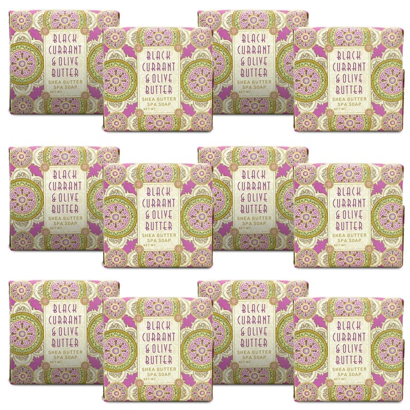 Greenwich Bay Mini Botanical Soap Bars – 12 Pack 1.9 oz Each – Individually Wrapped Guest Soaps for Airbnb, Spa, Travel, Bath – Travel Size Bar Soap Set, Black Currant & Olive Butter