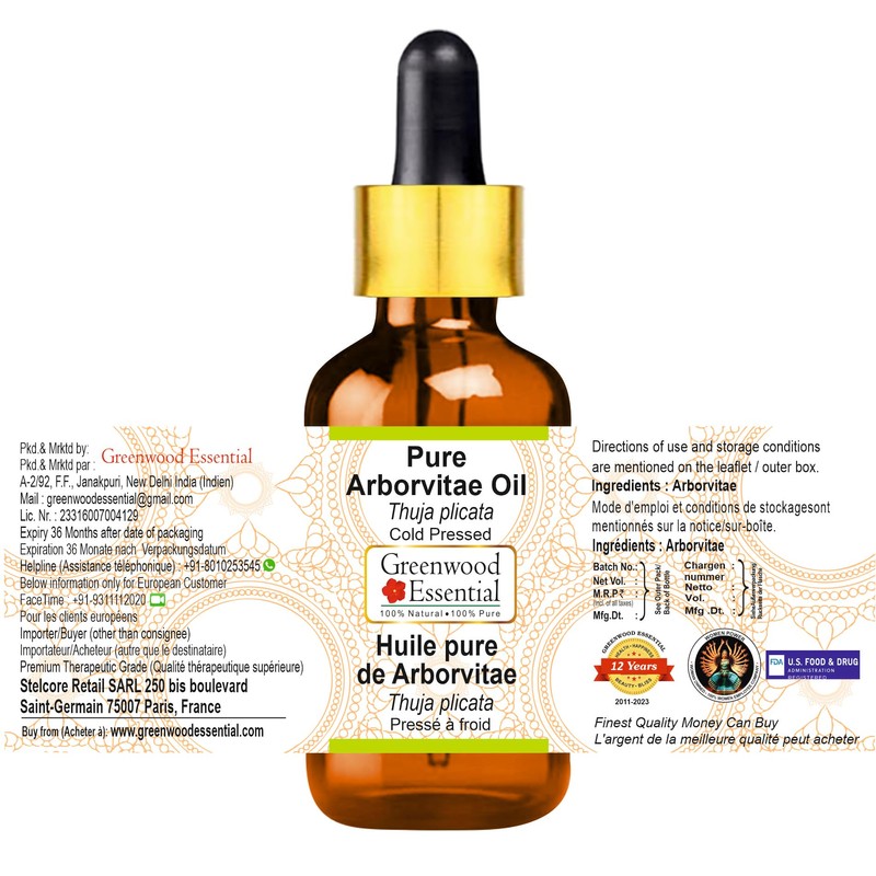 - Quantity - 50ml (1.69 oz) Container Type - High Quality Amber Glass Bottle with Glass Dropper. Method of Extraction: Cold Pressed Botanical Name -Thuja plicata, Pure, Natural, Undiluted, Therapeutic Grade Carrier Oil, Alcohol Free, Solvent Free, Vegan, Cruelty Free.