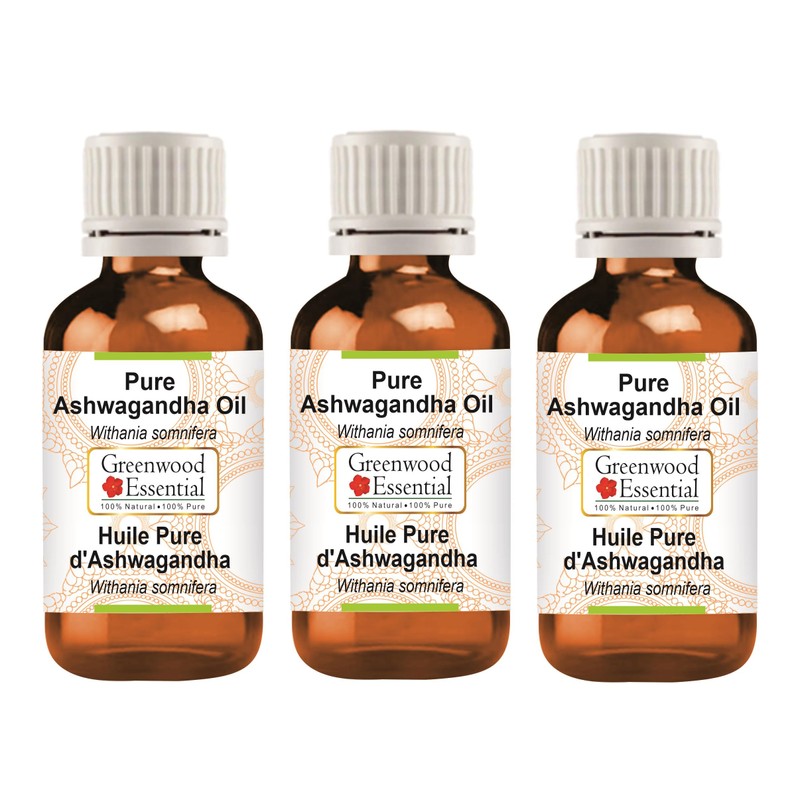 Greenwood Essential Pure Ashwagandha Oil (Withania somnifera) Therapeutic Quality for Hair, Skin and Aromatherapy (Pack of Three) 100 ml x 3 (10 oz)