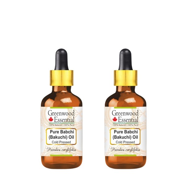 Greenwood Essential Pure Babchi (Bakuchi) Oil (Psoralea corylifolia) with Two Glass Droppers Cold Pressed (Pack of Two) 30ml X 2 (2 oz)