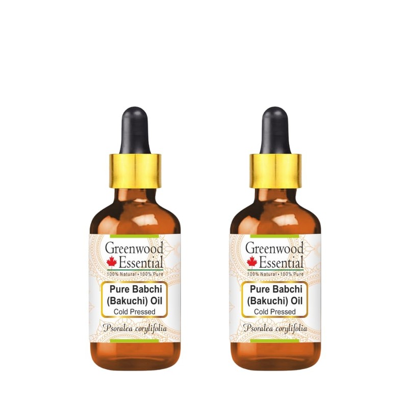 Greenwood Essential Pure Babchi (Bakuchi) Oil (Psoralea corylifolia) with Two Glass Droppers Cold Pressed (Pack of Two)