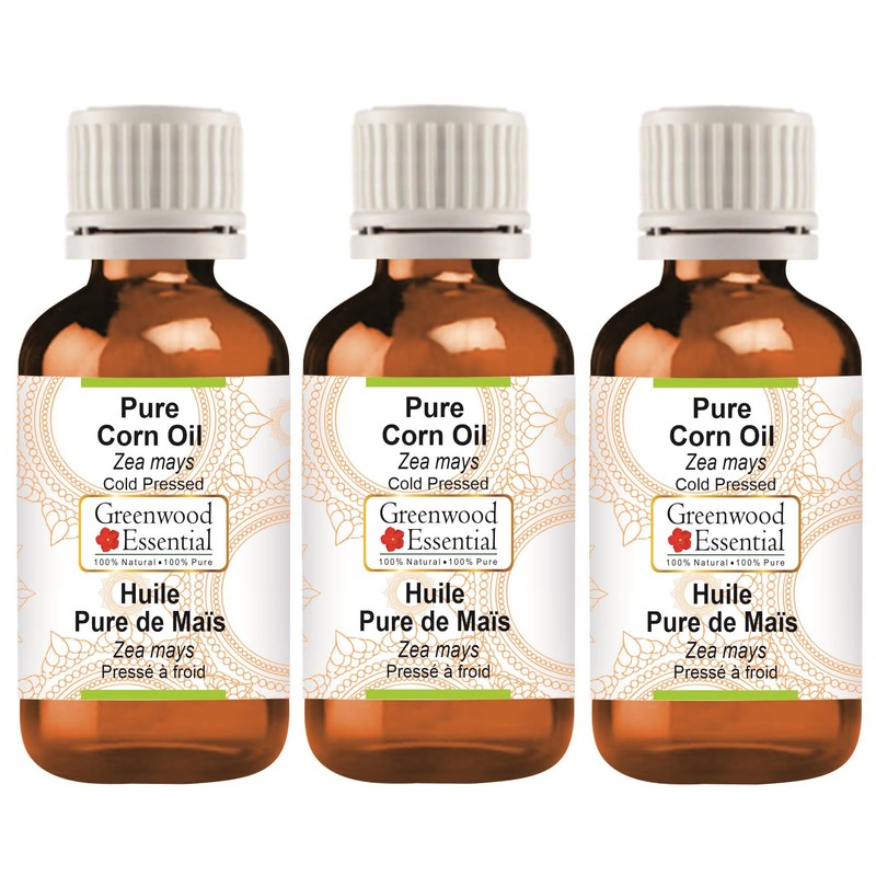 Greenwood Essential Pure Corn Oil (Zea Mays) Natural Therapeutic Quality Cold Pressed (Pack of Three) 100 ml x 3 (10 oz)