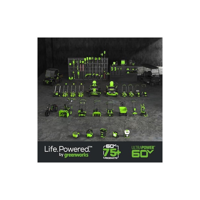 Landscaping has never been easier with Greenworks Pro 60V 75+ Max System. The most powerful cordless battery platform in outdoor power equipment, you can now breeze through homes, corporate parks and entertainment venues with zero gas, zero emission and zero maintenance. Go from zero to power with a push of a button and get you through the task at hand with less vibration, less noise and less mess. With additional batteries, a rapid charger for quick charge time and a multiple tool compatibility platform, you can get all your landscaping done with all the power and performance of gas while at a lower cost of operation. It's not just your job, it's your life.