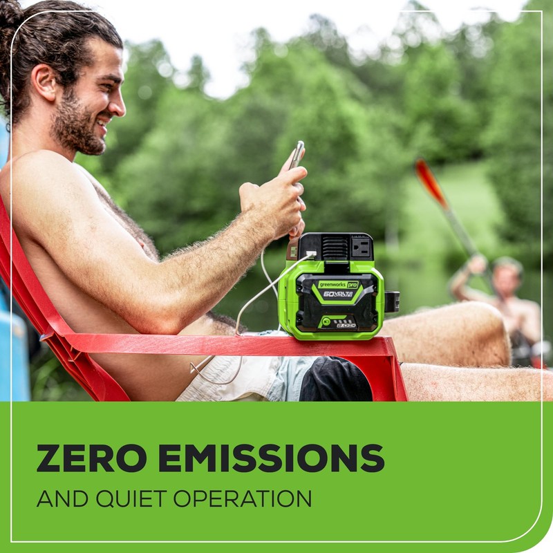 - 300W CONTINUOUS POWER - With Greenworks 60V battery (sold separately), the inverter provides continuous power to electronics with 120V Outlet.