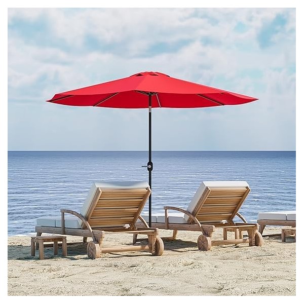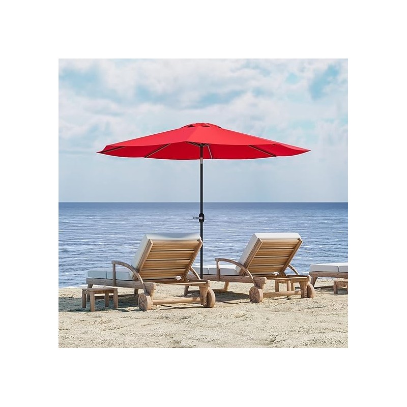Greesum 9FT Patio Umbrella with Push Button Tilt and Crank, Outdoor Table Umbrella with 8 Sturdy Ribs, Market Table Parasol for Garden, Lawn, Backyard & Pool, Without Base, Red