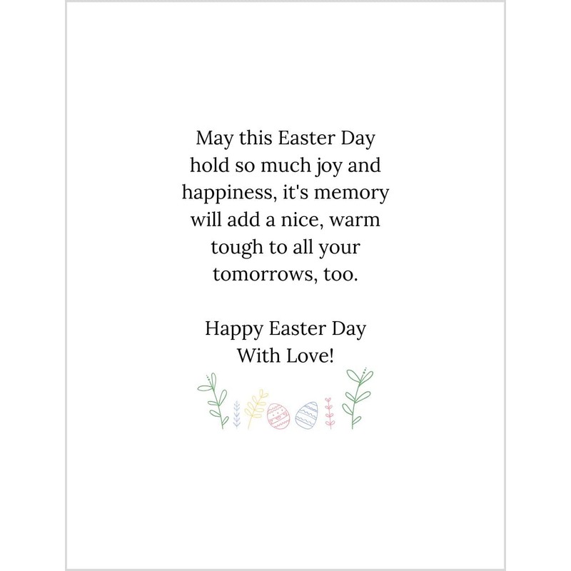 - Inside: May this Easter Day hold so much joy and happiness, it's memory will add a nice, warm tough to all your tomorrows, too. Happy Easter Day With Love!
