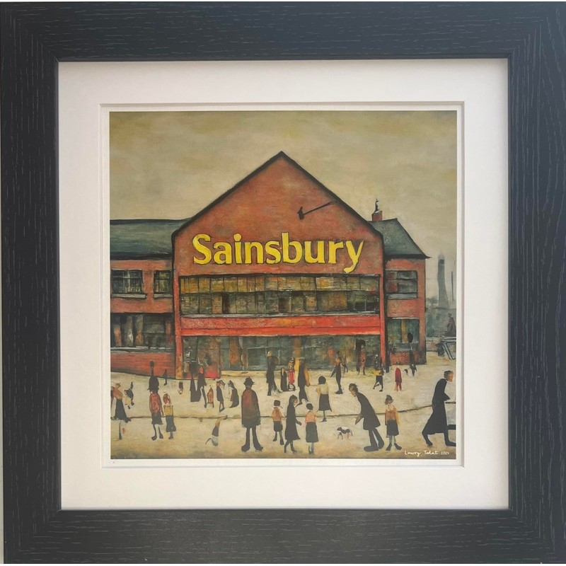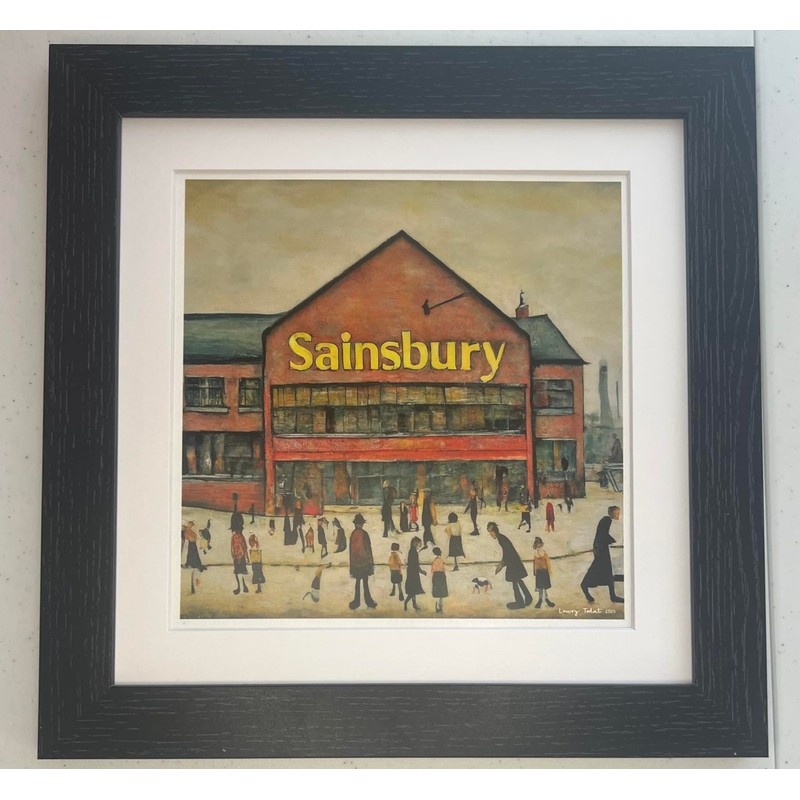 Greetingles Lowry-Style 12"/31cm Square Framed Print. Beautiful Black Ash Frame (Lowry, Sainsbury)