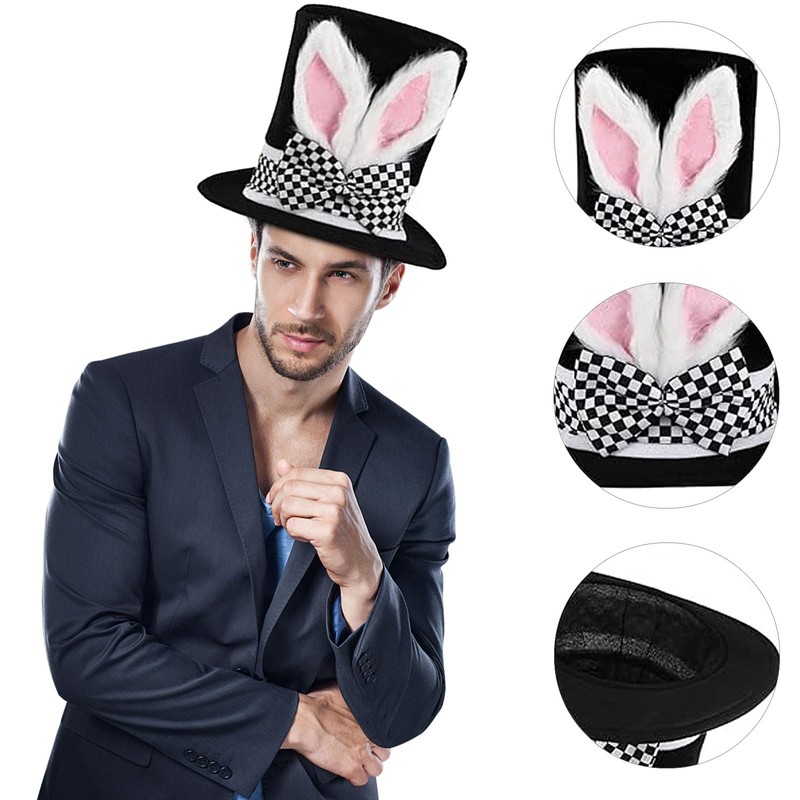 - This Easter White Rabbit Top Hat costume accessories set is suitable for anyone who dresses up as a white rabbit in a dream. The bunny costume set accessories are very suitable for Halloween, bunny costumes for adult women, men and teenage girls and boys