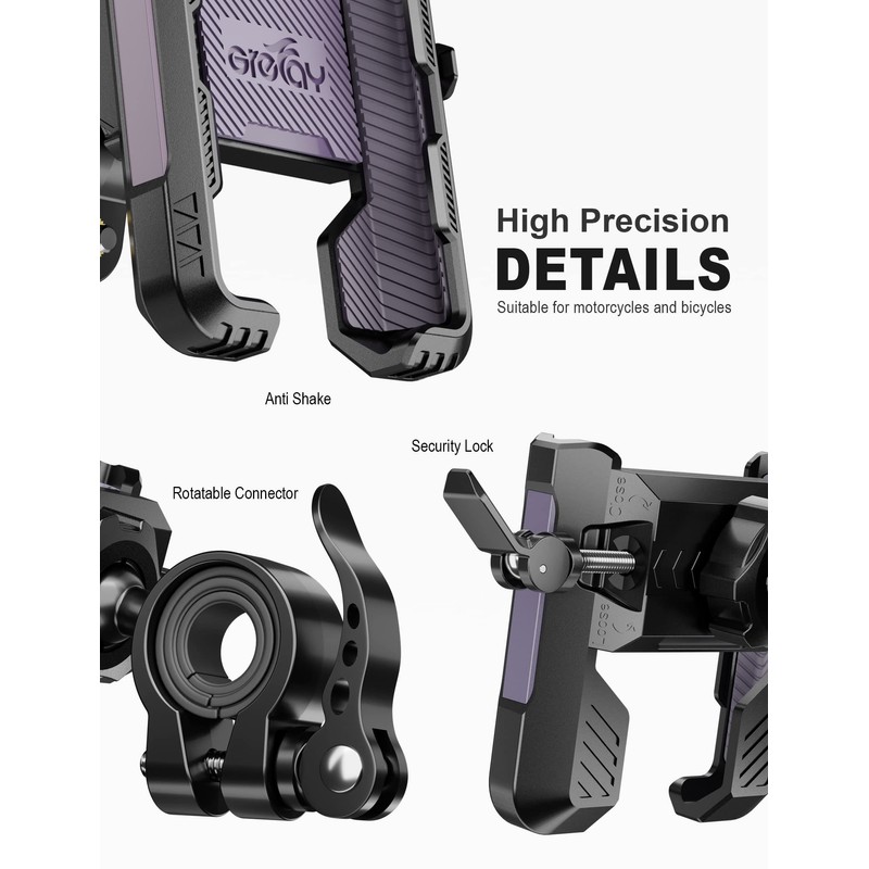 - Rotación de 360 grados: el soporte para teléfono móvil para espejo retrovisor de motocicleta Grefay está hecho de plástico de alta calidad y almohadillas de goma antideslizantes. No importa dónde esté el candado, protege bien el teléfono y no se mueve. El soporte del teléfono se puede girar 360 grados mediante una articulación esférica, el grado de mordida y los tornillos de ajuste se pueden ajustar finamente para fijar el teléfono inteligente, y la junta de silicona en el interior puede evitar que el teléfono inteligente se caiga.