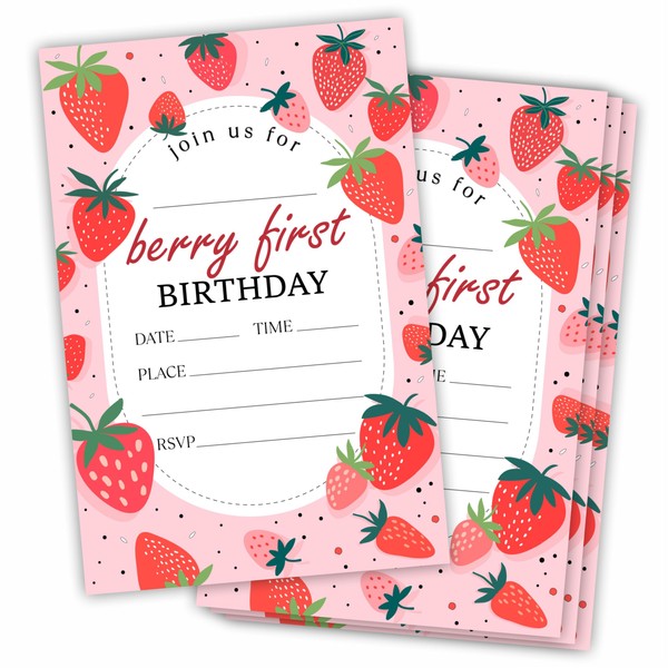 Grehos Berry first birthday Invitations With Envelopes, 20 Double-Sided Fill ...