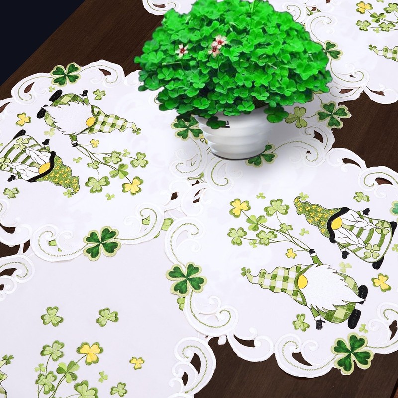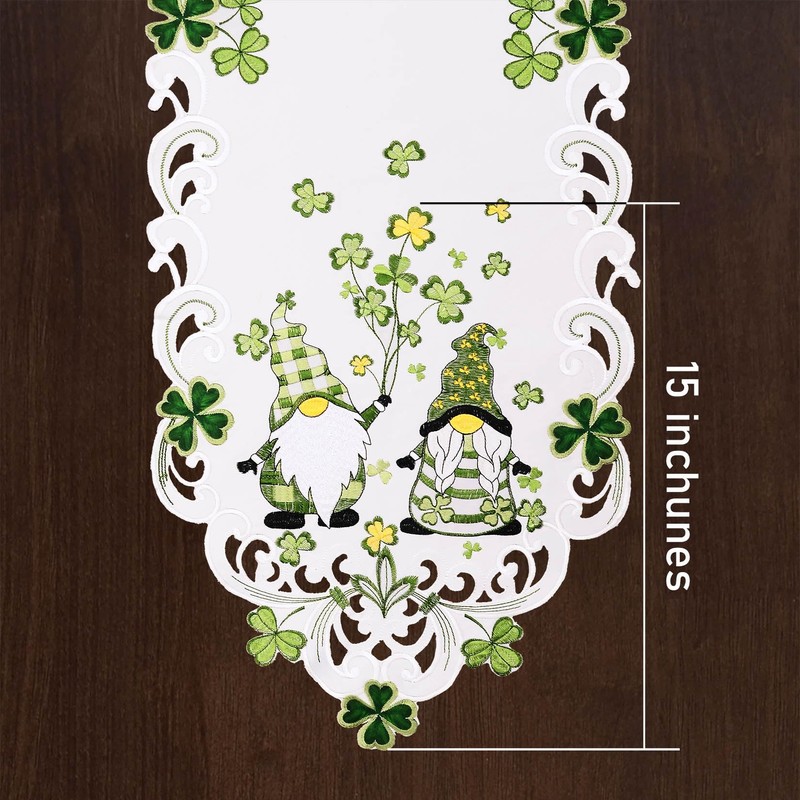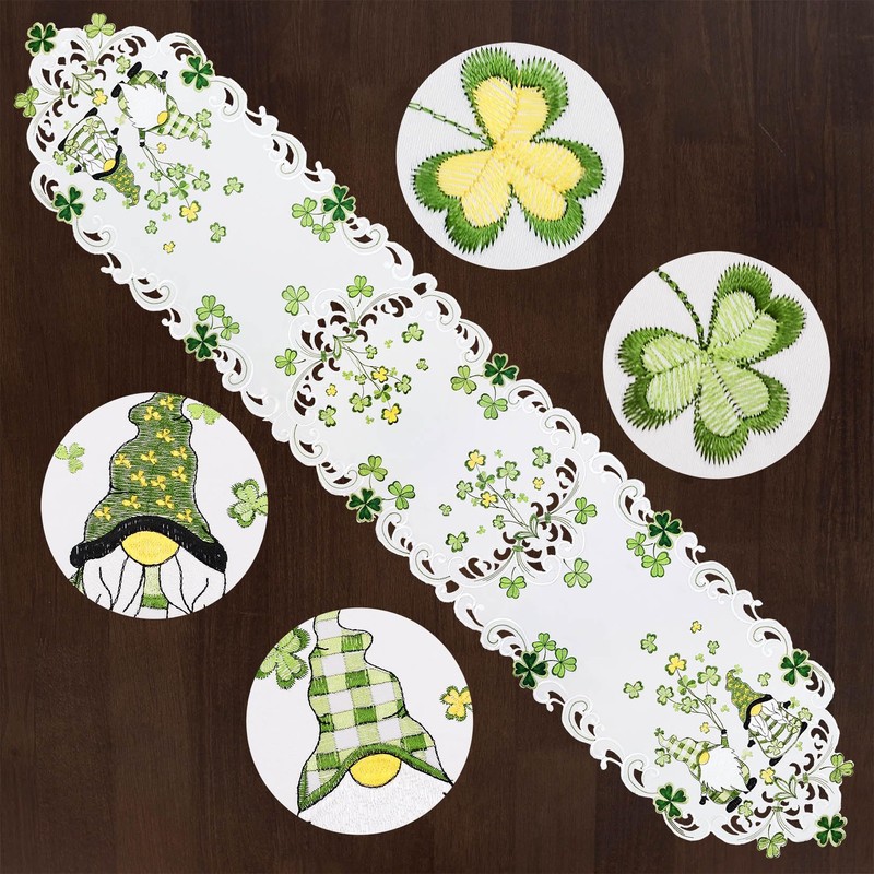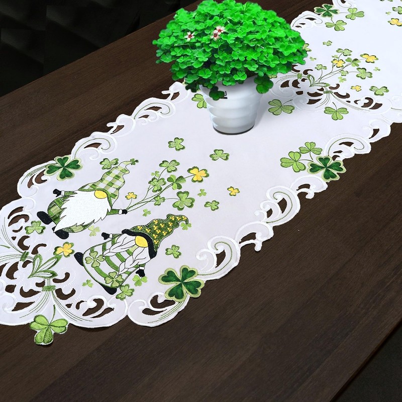 Grelucgo Embroidered Gnomes Table Runner for St. Patrick's Day, Spring Holida...