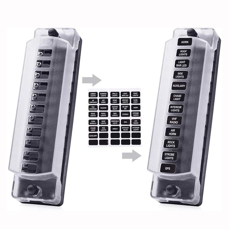 - General use: widely used in cars, boats, trucks, trailers, buses, caravans, RZR, UTV, pontoons, yachts, tankers, etc. Each fuse can be connected to all circuits such as ceiling lights, headlights, fog lights and rear lights, rocker switches, toggle switches, etc.